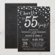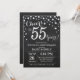 55-års bröllopsdag Inbjudan med Kritskrifttavla Svart och Silver. Femtiofem års bröllopsdag. Kritskrifttavla Svart och Silver Glitter Diamant Bakgrund. Silver Konfetti. Vuxen Födelsedag. Kvinna eller Man Manlig Födelsedagsfest. För ytterligare anpassning, klicka på "Anpassa"-knappen och använd vårt designverktyg för att ändra denna mall.