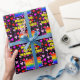Denna glada och roliga födelsedagstematiserade presentpapperdesign visar en stor siffra "55" med ett regnbågsspektrum-gradering inspirerat mönster, tillsammans med meddelandet "Grattis på 55-årsdagen", och ett anpassningsbart namn. Bakgrunden visar ett mönster av hjärtformer i färger som rosa, rött och lila. Presentpapper som detta kan användas när man slår in presenter som ges till någon för att fira deras femtiofemte födelsedag.