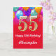 55:e födelsedag: Röda och Guld färgade ballonger Kort