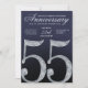 This modern anniversary invitation card showcases a striking diamond-style number fifty-five set against a deep navy blue background with refined silver accents. The faceted crystal detailing adds contemporary sparkle, while clean composition, smooth gradients, and subtle light textures create a polished and elegant look. The modern navy and silver color palette delivers a formal, luxurious feel, making this invitation ideal for hosting a stylish and memorable 55th anniversary celebration.