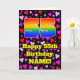 The front of this cheerful and fun birthday themed greeting card design features a large number “55” having a rainbow spectrum gradient inspired pattern. It also features the message “Happy 55th Birthday,”, and a customizable name. The background of the front features a pattern of red, purple, and pink heart shapes of various sizes. The inside has a customizable birthday greeting message, or could perhaps be cleared and left blank if a message is to be written by hand instead. A joyful, personalized birthday greeting card like this might be a fun way to send a birthday greeting message to somebody who is celebrating their fifty-fifth birthday. [~Z0000551]