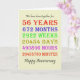56-årsjubileum med uppgifter om år, dagar, månader, timmar och minuter som du har varit gift med. Lustigt, men med en romantisk vers inuti. Ett kort till tankepaus i ge! Man har tagit hänsyn till läderåren!