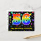 Framsidan av denna spännande, färgglada och roliga födelsedagstemanpassade vykortdesign har en stor siffra "56" med ett regnbågsspektrum-gradering-mönster. Den har också meddelandet "Grattis på 56-årsdagen" och ett anpassat mottagarnamn. Framsidan har dessutom en färgrik och livfull bakgrund med ett mönster av stjärnformer. Baksidan har ett anpassat födelsedagsmeddelande, eller kan eventuellt göras tom om ett meddelande ska skrivas för hand istället. Ett personligt födelsedagsvykort som detta kan vara ett roligt sätt att skicka ett meddelande för att fira någon som fyller 56 år. Vykort som detta kan också användas för att inbjuda gäster till en födelsedagsfest eller firande som hålls för