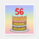 Den glatta och roliga pappra napkindesignen med födelsedagskalemat ger en bild av tecknad-stil med en treskiktstårskalkbit med sifferformade ljus ovanpå som visar åldern 56 år, tillsammans med meddelandet "LYCKLIG 56:e BIRTHDAY," och en anpassningsbar mottagare av namn. Bakgrunden har en flerfärgad pastellfärgad regnbågsspektrum som inspirerar till gradienten mönster. Roligtens födelsedag kan sådana pappra servetter användas vid en födelsedagsfest som firar någons femtiosjätte födelsedag. [~Z0000623]