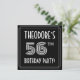 Snyggtens framsida och 1920-talet/1930-talet inspirerade stil till 56:e födelsedagsfirandekortsdesignen har ett anpassade namn, ett okomplicerat konst deco-utseende inspirerat nummer "56:e", meddelandet "FÖDELSEDAGSFEST!" och ett gräns mönster som består av linjer. Det finns som standard en bakgrund med svart färgad på framsidan, men den kan anpassas till ett annat färg om så önskas. Baksidan innehåller personlig om händelsen, t.ex. datum, tid, plats/plats och annan viktig information. Snyggt, elegant, inbjudningar till anpassadet som dessa kan användas för gäster/deltagare i inbjudan till en födelsedagsfest/sammankomst som hålls för att fira någons 56-årsdag. [~Z0000615]