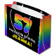 Den här glatta och fetstilta presentsäcksdesignen har nummer "57" med ett multifärgat regnbågsspektrum som inspirerar gradienten mönster, tillsammans med meddelandet "Lycklig 57:e födelsedagen" och en personlig mottagare namn. En presentsäck som denna kan användas när en gåva eller present ge till heder för någons 57-årsdag. [~Z0000632]