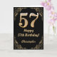 57:e födelsedag Svarta och Guld Glitter Ram Kort