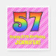 I lycklig och på 57:e födelsedagen har den pappra napkindesignen ett stort antal "57" med en färgstark mönster inspirerad av ett regnbågsspektrum. Det innehåller också budskapet "Lycklig 57:e födelsedag" och ett anpassade namn. Bakgrunden är en mönster av rand för ljus rosa rosa och mörk som innehåller levande hjärtformer av rosa. Roligt, personlig pappra blöjor av det här slaget kan användas vid en födelsedagskalender som hålls för att hedra någons femtiosjunde födelsedag. [~Z0000417]