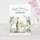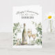 Watercolor wine bottle and two wine glasses, set against a soft green floral frame of ivy and eucalyptus, for the couple's 57th wedding anniversary.
