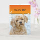 Söt brun pudel med prästkragar på flätad stol för 58-årsdagen,