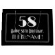 Den här vintagen ser ut som Raring Twenties stil inspirerat presentsäcksdesignen med födelsedagstext har ett stort konst deco stil inspirerat nummer "58", meddelandet "Lycklig 58:e födelsedag", ett anpassade namn och ett gräns mönster som består av tunt linjer. Den har också en bakgrund med svart färgad. En presentpåse som denna kan användas när man slår in presenter som ges till någon i firande på deras 58-årsdag. [~Z0000496]