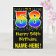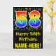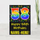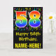 Framsidan av den här roligten, den klara och färglösa symbolen för hälsningskort för födelsedag har ett stort nummer "58" med en regnbågsspektrumövertoning som inspirerade mönster. Det innehåller också budskapet "Lycklig 58:e födelsedag" och en redigerbar mottagare av namn. På framsidan finns också en färgstark musik noter och symboler mönster. Insidan innehåller ett hälsning-meddelande från anpassadets födelsedag, eller kan kanske tas bort och lämnas tomt om ett meddelande ska skrivas för hand i stället. Ett sådant här födelsedagskort i anpassningsbarna kan vara ett roligt sätt att skicka önskemål till en musiker, sångare, kompositör eller någon annan som firar sin femtioåttonde födelsedag. [~Z0000420]