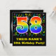 Framsidan av den här roligten, den klara och spännande födelsedagsfest inbjudan-designen har ett stort nummer "58" med en regnbågsspektrumövertoning som inspirerade mönster. Det innehåller också ett anpassade namn och meddelandet "58:e Födelsedagsfesten!". En del av bakgrunden har en roligt mönster med olika musik noter och symboler med olika färg och storlekar. Baksidan innehåller anpassad information om den händelse som potentiella gäster bjuds in till. Sådana här visitkort som kan redigeras i födelsedagsfest inbjudan kan användas när gäster bjuds in till ett party som hålls för att hedra en kompositör i sång, en sångare, en musiker eller någon annans 58-årsdag. [~Z0000427]