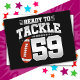 Denna fotbollsfödelsedagsdesign är perfekt för en 59-årsdag fotbollstema födelsedagsfest för att fira att man fyller 59 år! Har 'Redo att tackla 59' 59-årsdag fotbollscitat med fotbollsgrafik. Perfekt för alla som älskar fotboll som fyller 59 år!