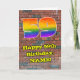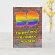 Denna spännande och livfulla urbana gatudesign och graffiti-inspirerade födelsedagsgratulation kortdesign har en stor siffra "59" med ett färgrikt regnbågsspektrum-gradering mönster, tillsammans med meddelandet "Grattis på 59-årsdagen", och ett redigerbart namn. Bakgrunden på framsidan har ett tegelväggmönster. Insidan har ett personligt födelsedagsgratulationsmeddelande, eller kan kanske rensas och lämnas tomt om ett meddelande ska skrivas för hand istället. Ett färgglatt, redigerbart födelsedagsgratulationskort som detta kan användas för att gratulera någon på deras femtio-nioårsdag. [~Z0000586]