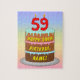 Den här roligten och den roliga pusselpusslet med födelsedag har en tecknad-stil-bild av en treskiktad födelsedagskalas med sifferformade ljus ovanpå som visar åldern 59 år, tillsammans med meddelandet "LYCKLIG 59 BIRTHDAY,", och anpassadets mottagare namn. Bakgrunden har ett monteringsspektrum för pastellregnbåge med flera färg inspirerad gradient mönster. Ett färglöst, redigerbart födelsedagspressel som detta kan ges i firande på någons femtionionde födelsedag. [~Z0000621]