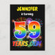 Framsidan av detta spännande och pulserande vykort från födelsedagsfest inbjudan har en personlig namn, ett livligt brinnande berömmande fyrverkerier inspirerade mönster, och meddelandet "59 ÅRS OLD!" med ett färgstarkt regnbågsspektrum inspirerat till gradient mönster. Baksidan innehåller ett personlig med information om party, till exempel när och var det hålls kvar. Bjudkort av detta slag skulle kunna skickas till potentiella deltagare i en födelsedagsfest som hålls i firande på någons femtionionde födelsedag. [~Z0000452]