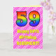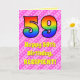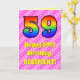 Framsidan av denna festliga och roligt 59:e födelsedag med hälsningskort har ett stort nummer "59" med en färgstark mönster inspirerad av ett regnbågsspektrum. Det innehåller också budskapet "Lycklig 59:e födelsedag" och en redigerbar mottagare av namn. Bakgrunden till framsidan har en mörk rosa och ljus rosa rand mönster som innehåller levande hjärthjälpformer av rosa. Insidan innehåller ett hälsning-meddelande från anpassningsbarnas födelsedag, eller kan kanske tas bort och lämnas tomt om ett meddelande ska skrivas för hand i stället. Ett sådant här födelsedagskort i personlig kan vara ett roligt för att skicka ett meddelande i firande om någons femtionionde födelsedag. [~Z0000416]