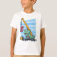 Lycklig 5:e födelsedagen. Lustigt och underbart Barns födelsedag-design med söt dinosauer sitta på en mobilkran som lyfter nummer 5. En perfekt matchar för barn och ungdomar.