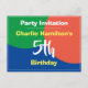 Inbjudan till en speciell födelsedagsfest med namn och antal år. Födelsedagsinbjudan för ett 5-årigt barn
