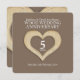 Personliga bröllopsinbjudningar för 5-årsdag i trä, bruna. Vackra, handgjorda grafiska effekter i trä och hjärta tryckta på bruna bröllopsinbjudningar för 5-årsfirande. Bakgrundsfärgen kan ändras om så önskas. Anpassa med dina egna detaljer för bröllopsfirande i trä. 5-årsdagen är traditionellt förknippad med trä och hjärtat symboliserar kärlek. Originalgrafiken med trä och hjärta samt designen är skapad av Sarah Trett www.sarahtrett.com för www.mylittleeden.com