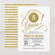 Elegant design i falskt glitter guld och vitt. Har modern typografi script font. Skål för 5 år! Kan anpassas till vilket år som helst.