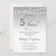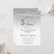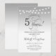 Inbjudan till 5-års bröllopsjubileum. Silver- och vit design med stränglyktor och elegant typsnitt. Skål för 5 år! Kan anpassas till vilket äktenskapsår som helst! Skicka ett meddelande om du behöver ytterligare anpassning.