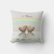 Kuddfodral med min originalillustration av två trähjärtan som flyter på vattnet under en regnbåge. Texten säger "5 år".