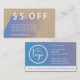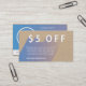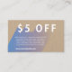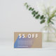Anpassa det här marknadsföring-kortet för trendigets rabatt. Detta är perfekt för ett e-handelsföretag som en butique-, Etsy-butik eller något annat litet företag. Den innehåller frasen "$5 OFF" och har anpassade som förklarar ytterligare speciella erbjudandedetaljer. Omvänd sida har företagskontaktinformation.