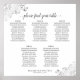 Detta 5-bord-passagerardiagram kommer att hjälpa dina gäster att hitta högerna bord vid mottagningen. Utformningen är både enkel och elegant med mörk grått-text på en vit bakgrund och lacy silver faux-folie-blommigt i hörnen. Rubriken lyder "hitta bord" i ett elegant-skript med kalligrafi. Sofistikerad och chic. Inkluderar bord-uppdrag för 50 gäster med 10 platser per bord.