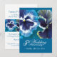 Inbjudan till 5-årsjubileum med blomstermotiv. Vackra blå turkosa målade penséer i jubileumets färger. Anpassa med dina egna festdetaljer. Originalkonst målad i gouache av Sarah Trett.