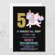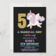 5:e regnbåge, enhörning på födelsedagen, svart inbjudningar