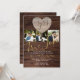 Fira din bröllopsdag i stil med dessa eleganta men ändå moderna bröllopsdag-inbjudningar med rustik tema. De har en romantisk graverad trä-hjärta-grafik där du kan lägga till makarnas initialer. Visa upp vad sann kärlek betyder med era par-foton. Du kan lägga till tre foton totalt. Varför inte lägga till ett foto av när ni träffades, när ni gifte er och ett av er båda nu för extra effekt och för att skapa en unik souvenir-inbjudan som era bröllopsdags-gäster kommer att värdesätta. För hjälp och matchande festtillbehör, kontakta designern här.