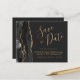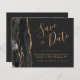 Det här eleganta budget-spara-datum-kortet har en svart akvatell akvamarin kant med falskt guldglitter. Den anpassningsbara texten kombinerar guldfärgad handskriven skrift, kopparplåt och kursiv stil på en off-black bakgrund. Baksidan ger utrymme för 5 bilder (2 fyrkantiga, 2 horisontella, 1 vertikal) och plats för din webbplats URL eller annan information. Byt enkelt ut exempelbilderna mot dina egna favoritbilder.