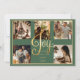 “Glädje” i vacker falsk guldskrift. Säsongsbetonad grön bakgrund. Lägg till dina favoritfamiljefoton för att anpassa. Ändra namnen och året, ditt namn och ett vackert julkort. Elegant. Så enkelt, men ändå chic.