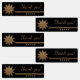 Professionellt utseende, guldtext, vattentät, tack-etikett. Designen har 5 guldstjärnor på framsidan och möjligheten att göra den till din egen. Lägg till din logotyp eller foto. Perfekt för entreprenörer och företag att använda på förpackningar och frakt. Klicka på "anpassa ytterligare"-länken och använd vårt designverktyg för att ändra denna mall. Finns i flera färger.