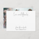 5 Foton Namn Script Bröllop Newlyed Kärlek och Tack. Det finns mycket tomt utrymme så att du kan skicka ditt eget speciella tackmeddelande när du tar emot. Med ett handskriftsformat stil för Kärlek och tack och Från Newlyweds och enkelt anpassa namn och ersätt exemplet med fem bilder på baksidan med ett eget foto.