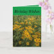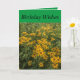 En skugga fylld med vilda blommor av gult täcker framsidan av detta födelsedagskort.