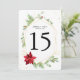 Temapartynas helgdag är ett grönt bordsnummer med handmålade botaniska vattenfärger och en söt röd poinsettia. Utformningen är ramad i en vattenfärgsdiamant i dubbla guld och accentuerad med matchande guld-spekkler. #Jul #Helgdagar #HolidayParty