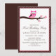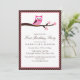 födelsedagsfest inbjudan har ett sitta i rosa uggla på en gren i träd mot en brunt och rosa polkadot
