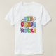 Stor ljus text i primära färger läser "den 5th klassen vaggar" mot en bakgrund av svart notblad på 5th klassstenar lärare och studentT-tröja, hoodies, muggar, skolar tote bags, kort, klistermärkear, magneter och mer!