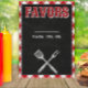 En del av vår BBQ Birthday Bash-samling! Designad för de som älskar bakgårdsgrillning, har denna samling krittavla-ackcenter, en kritbrevstilsdesign samt klassiskt rött och vitt rutigt tyg för att lägga till den speciella känslan på din utomhusfest. Perfekt för födelsedagar för pappa, farfar, en kollega, vänner och familj. Kom igång med dina dekorationer och inbjudningar med denna lättredigerade samling och få dem beställda på några minuter! Dessa skyltar är också perfekta för vilken grillfest som helst, som Fars dag, familjeåterträff, studenten eller till och med en fjärde juli-firande!