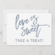 Borstsriftskrivna "Kärlek är Sött" Godisbuffé-skylt (Dammigt Blå): Dekorera bröllopsgodisbaren eller buffébordet med denna moderna kalligrafiskylt skriven med borste. Den är inställd på dammigt blå / blågrå. Det är faktiskt lite mer grått än blått, men du kan ändra färgen på din ände bara genom att ändra din bakgrundsfärg!