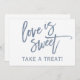 Borstsriftskylt "Love is Sweet" Godisbuffé (dammtorblå): Dekorera bröllops godisbar/buffébord med detta moderna kalligrafiskylt. Den är inställd på dammtorblå / blågrå. Det är faktiskt lite mer grått än blått, men du kan ändra färgen på din ände bara genom att ändra din bakgrundsfärg!