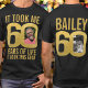 60-årsdagen svart och guld, det tog mig 60 år att se den här bra anpassningsbarna två foton och namn på baksidan av t-shirt. Roligtens 60:e personlig fotosvart och guld födelsedagsteckendesign. Anpassa den här födelsedagskalan med två fotografier av födelsedagspojken eller flickan i mitten på siffran 0 på framsidan och baksidan. Underbar idé om att lägga till lite roligt till en milstolpe på sextioårsdagen. Andra matchande artiklar och färg är tillgängliga. Exklusiv design av Sarah Trett för www.mylittleeden.com