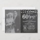 60-års bröllopsdag Inbjudan med eget foto. Kritstavla Bakgrund. Strängljus. Svart och Vitt. 1:a, 2:a, 3:e, 4:e, 5:e, 10:e, 15:e, 20:e, 25:e, 30:e, 35:e, 40:e, 45:e, 50:e, 55:e, 60:e, 65:e, 70:e, 75:e, 80:e, Alla År. Födelsedagsfirande för vuxna. Kvinnlig eller manlig födelsedag. För ytterligare anpassning, klicka på "Anpassa"-knappen och använd vårt designverktyg för att ändra denna mall.