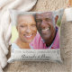 En kudde som gåva för att fira 60-års diamantbröllop. En elegant klassisk vit bakgrund, dekorerad med falska diamanter. Anpassa och lägg till ditt eget högkvalitativa foto av det lyckliga paret. Texten: Namnen skrivs med en svart modern handskriven stil. Mallar för namn och datum.