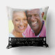En kudde som en gåva, för att fira 60-års diamantjubileum för bröllop. En elegant modern svart bakgrund, dekorerad med falska diamanter. Anpassa och lägg till ditt eget högkvalitativa foto av det lyckliga paret. Texten: Namnen skrivs med en vit modern handskriven stil. Mallar för namn och datum.