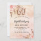 A ro guld, rosa, skorstensbildning mot metallisk tittar bakgrund. Dekorerad med ro guld och rosa blommigt, rosor, pampasgräs. Anpassa och lägg till information om namn och party. Nummer 60 skrivs med ett stil-teckensnitt med ballong.
