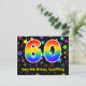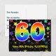 Framsidan av denna roliga, spännande och färgglada födelsedagskortdesign har en stor siffra "60" med ett regnbågsspektrum-gradering-mönster. Den har också texten "Grattis på 60-årsdagen," och ett redigerbart mottagarnamn. Framsidan har dessutom ett färgglatt och livfullt stjärnformsmönster i bakgrunden. Baksidan har ett anpassat födelsedagsmeddelande, eller kan rensas och lämnas tomt om ett meddelande ska skrivas för hand istället. Ett anpassningsbart födelsedagskort som detta kan vara ett roligt sätt att uppmärksamma någons sextioårsdag. Kort som detta kan också användas för att inbjuda gäster till en födelsedagsfest eller kalas som hålls för någon som fyller 60 år
